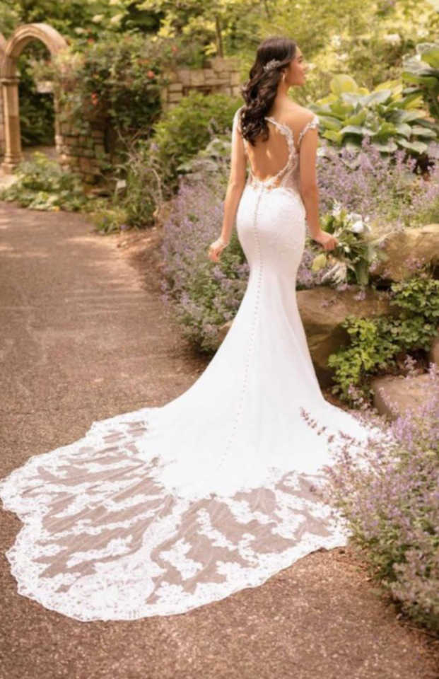 Gorgeous keyhole back detail with stunning lace inset train