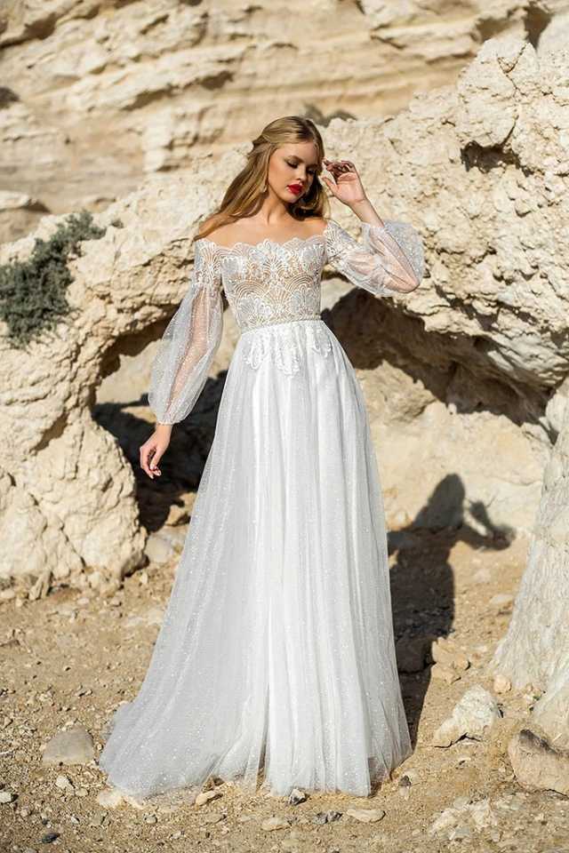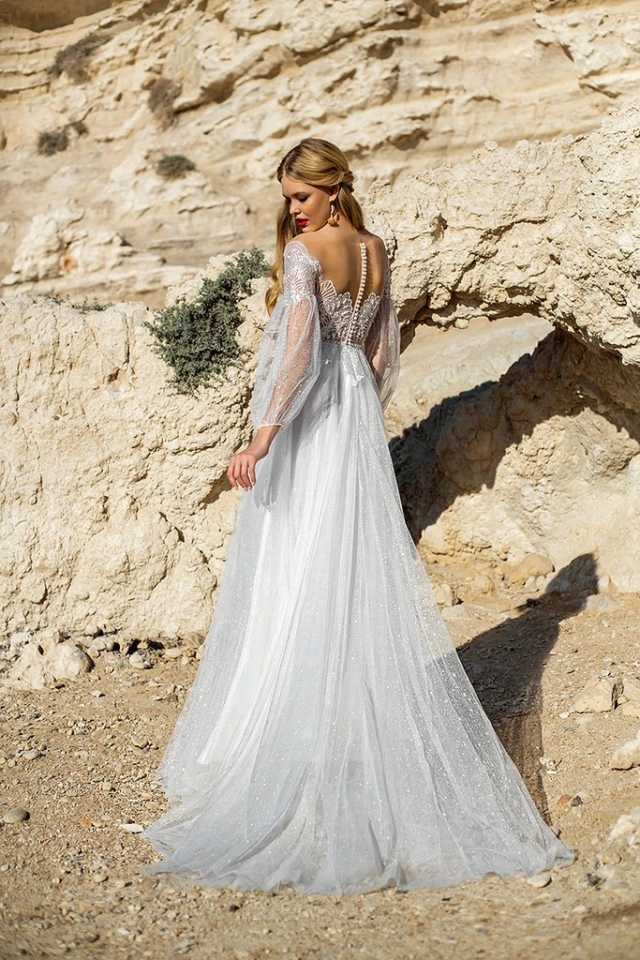 Beautiful boho style gown with sheer sleeves