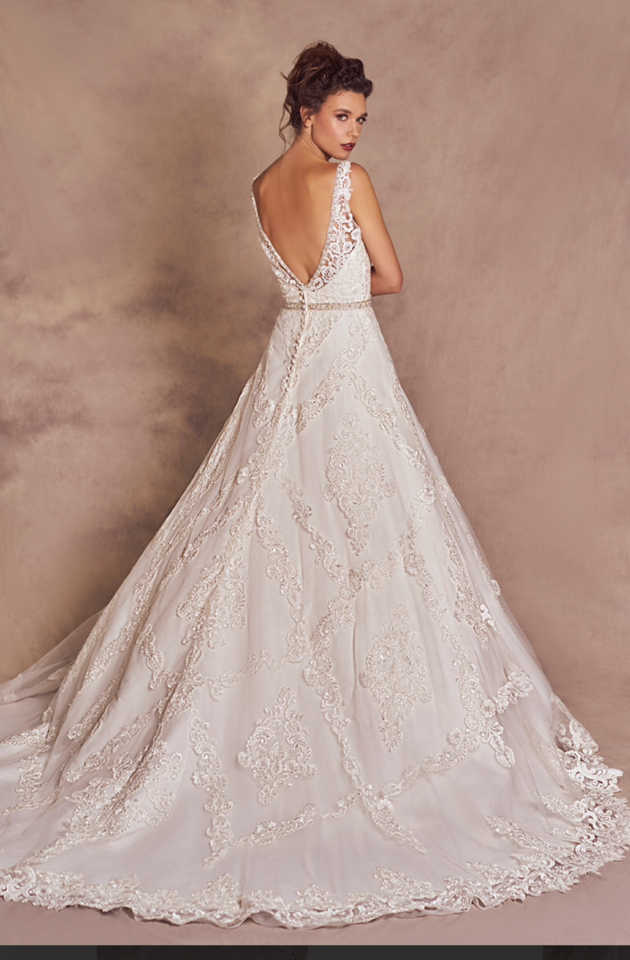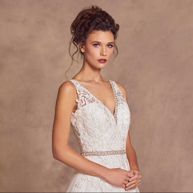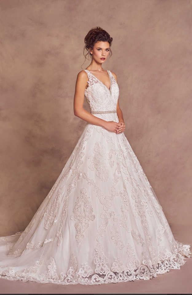 Gorgeous lace gown with beaded belt and beaded strap detail